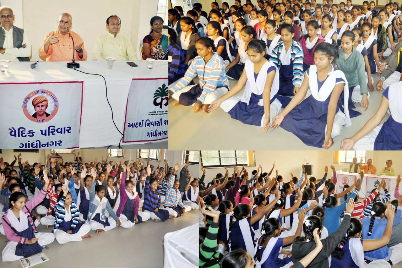 आदर्श निवासी कन्या शाला, रायसन गाँधी नगर गुजरात में 20 नवंबर 2017 को स्वामी विवेकानंद परिव्राजक जी ने आध्यात्मिक प्रवचन और शंका समाधान किया तथा ईश्वर का ध्यान करना भी सिखाया । इस प्रवचन में उन्होंने कर्मफल विषय की विस्तृत व्याख्या की। उससे कन्याएँ बहुत संतुष्ट हुई । उन्होंने अपने जीवन के कल्याण के लिए शुभ कर्म करने तथा दोषों को छोडने के संकल्प भी लिए ।